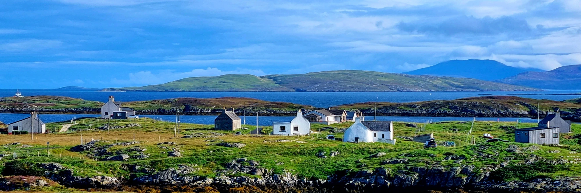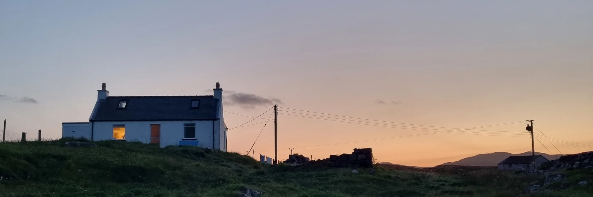 Rubha Chàrnain (Gaelic for "Stony Point") offers simple holiday accommodation on the beautiful Isle of Barra in the Outer Hebrides. This artist-owned cottage has: